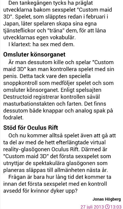 Virtual reality: sex är givetvis först ut 31 augusti 2013Penardun Uncategorized Etiketter:lan, lol, tv-spela, Virtual reality Eeeww Vill du verkligen dela? Tjohoo! Tryck: Klicka för att e-posta en länk till en vän (Öppnas i ett nytt fönster) E-post Dela på TumblrMerTweet Klicka för utskrift (Öppnas i ett nytt fönster) Skriv ut Klicka för att dela på Reddit (Öppnas i ett nytt fönster) Reddit PocketGilla Laddar in … Relaterade