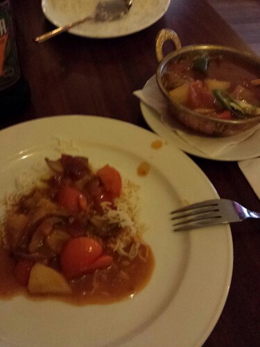 Köpte öl, från Bangladesh, som hette Bangla. Helt ok, funkade bra till den starkt kryddade maten. 66 cl för 70 spänn.