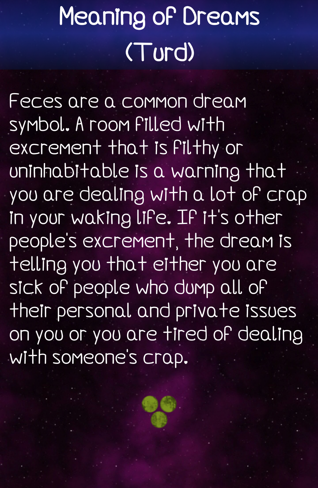 Bläddrade runt lite och råkade på ”turd”. WTF? Att drömma om avföring är alltså vanligare än att drömma om sina föräldrar?! Förklaringen var ju helkul också 😀 (gillar språkbruket med ”crap in your life” etc, fint uttryckt).