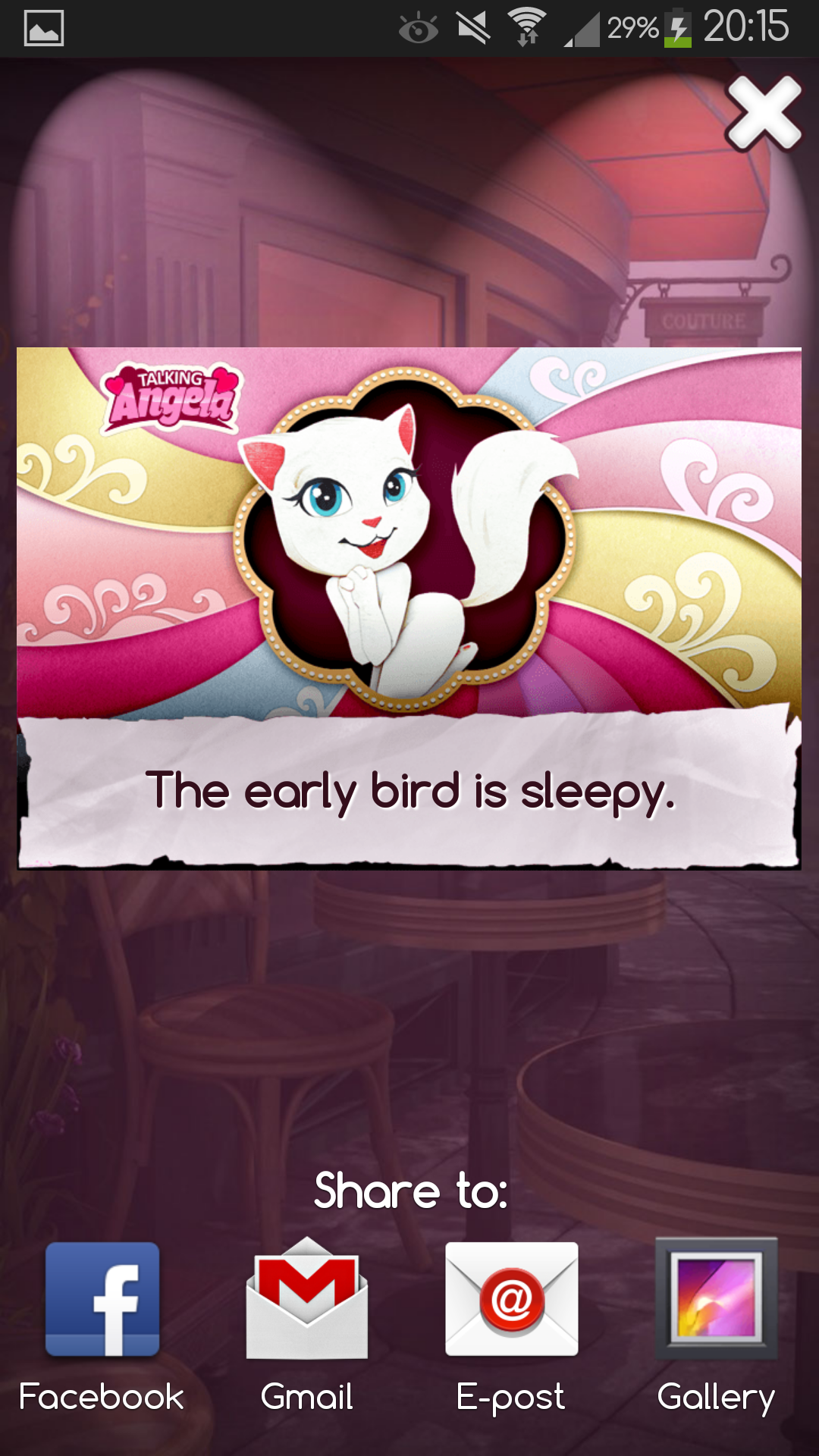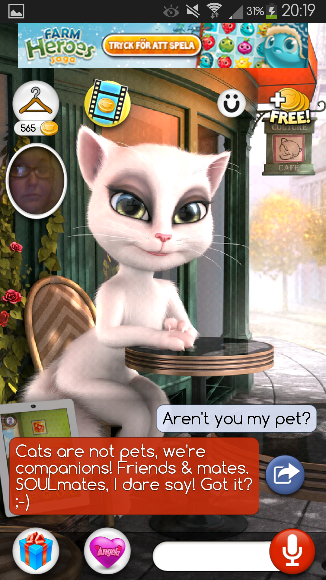 Talking Angela pt. 2 4 mars 2014Penardun Appar, lol Etiketter:Talking Angela Måste medge att spelet är lite mysko och det känns lite vuxet. Drinkar och smink är väl inte vardagsmat för småbarn? Inga pedofiler i sikte dock. En hel business också… Vill du verkligen dela? Tjohoo! Tryck: Klicka för att e-posta en länk till en vän (Öppnas i ett nytt fönster) E-post Dela på TumblrMerTweet Klicka för utskrift (Öppnas i ett nytt fönster) Skriv ut Klicka för att dela på Reddit (Öppnas i ett nytt fönster) Reddit PocketGilla Laddar in … Relaterade