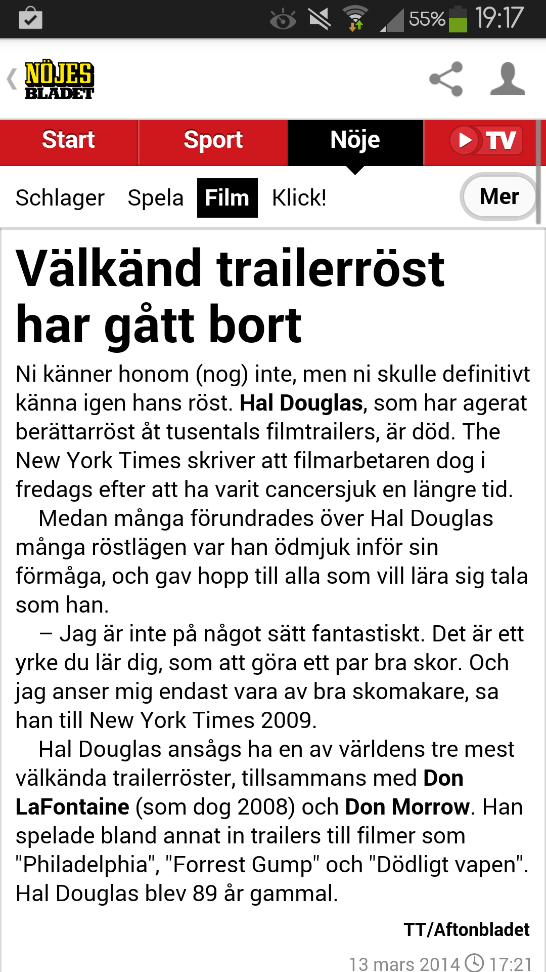 RIP ”Rösten” 13 mars 2014Penardun Bild Död, Film Etiketter:Hal Douglas Vill du verkligen dela? Tjohoo! Tryck: Klicka för att e-posta en länk till en vän (Öppnas i ett nytt fönster) E-post Dela på TumblrMerTweet Klicka för utskrift (Öppnas i ett nytt fönster) Skriv ut Klicka för att dela på Reddit (Öppnas i ett nytt fönster) Reddit PocketGilla Laddar in … Relaterade