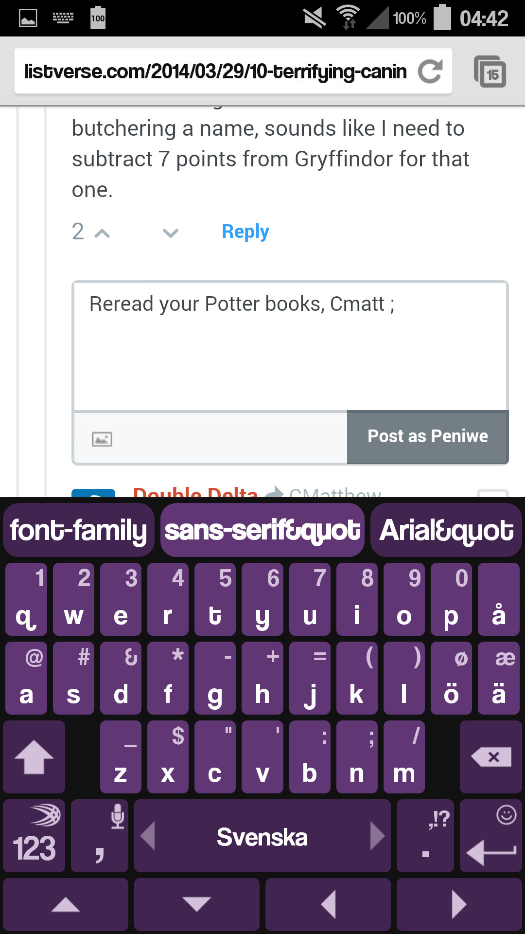 Samsung galaxy s4 autocorrect 16 april 2014Penardun lol, Personligt Pryd fån. Skriver ”H”. Hisingen eller Hitler. . Hmnn.. Återigen pryd. Jag har inte skrivit någon av orden… HAHAHA. Calmfors? Eeeww Samsung gillar inte sköldpaddor 😦 Bra! Vill du verkligen dela? Tjohoo! Tryck: Klicka för att e-posta en länk till en vän (Öppnas i ett nytt fönster) E-post Dela på TumblrMerTweet Klicka för utskrift (Öppnas i ett nytt fönster) Skriv ut Klicka för att dela på Reddit (Öppnas i ett nytt fönster) Reddit PocketGilla Laddar in … Relaterade
