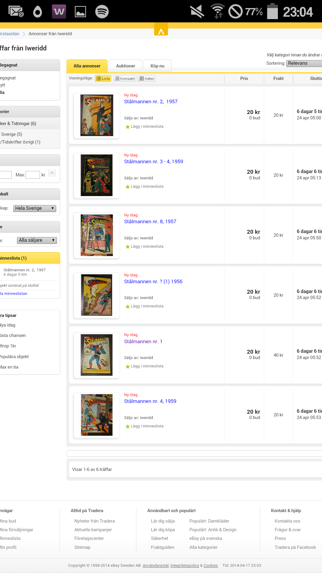 Stålmannen på Tradera 17 april 2014Penardun Uncategorized Förmodligen kommer inga tidningar bli sålda, Vill du verkligen dela? Tjohoo! Tryck: Klicka för att e-posta en länk till en vän (Öppnas i ett nytt fönster) E-post Dela på TumblrMerTweet Klicka för utskrift (Öppnas i ett nytt fönster) Skriv ut Klicka för att dela på Reddit (Öppnas i ett nytt fönster) Reddit PocketGilla Laddar in … Relaterade
