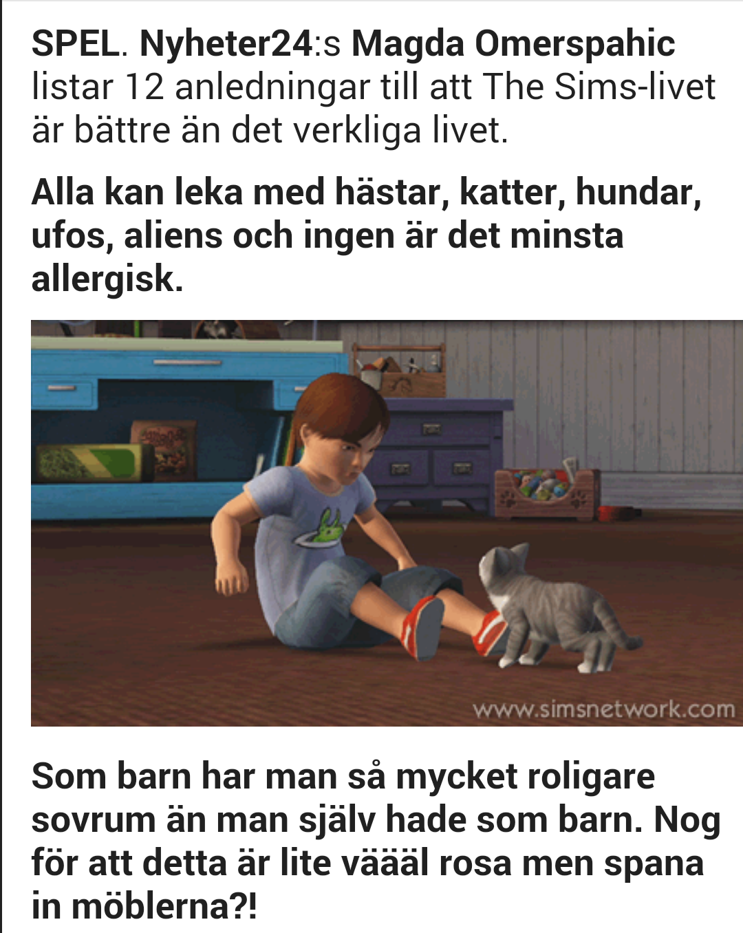 The Sims 27 april 2014Penardun Internetsidor, lol, TV-spel Etiketter:The Sims Artikel på Nyheter24 – blir helt nostalgisk och sugen på att spela. Måste fan köpa en dator å det snaraste. Lite kul att ansiktsigenkänningen funkar så bra, även på CGI. Vill du verkligen dela? Tjohoo! Tryck: Klicka för att e-posta en länk till en vän (Öppnas i ett nytt fönster) E-post Dela på TumblrMerTweet Klicka för utskrift (Öppnas i ett nytt fönster) Skriv ut Klicka för att dela på Reddit (Öppnas i ett nytt fönster) Reddit PocketGilla Laddar in … Relaterade