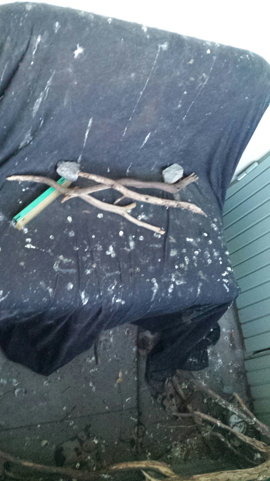 Vi såg inte till duvorna, så vi började laga nätet så vi och Spippo ska kunna vara där ute.