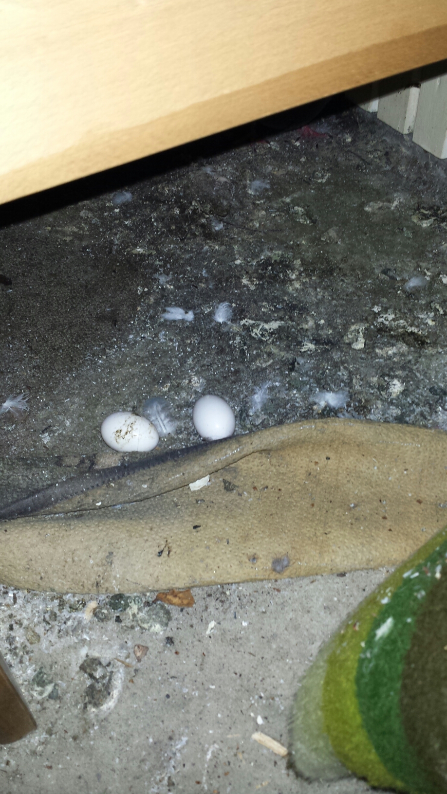 WTF?! Ägg?! FFS, det är inte sant! Ok, teorin om nyfödda duvungar var i alla fel, men här ligger två okläckta varelser.