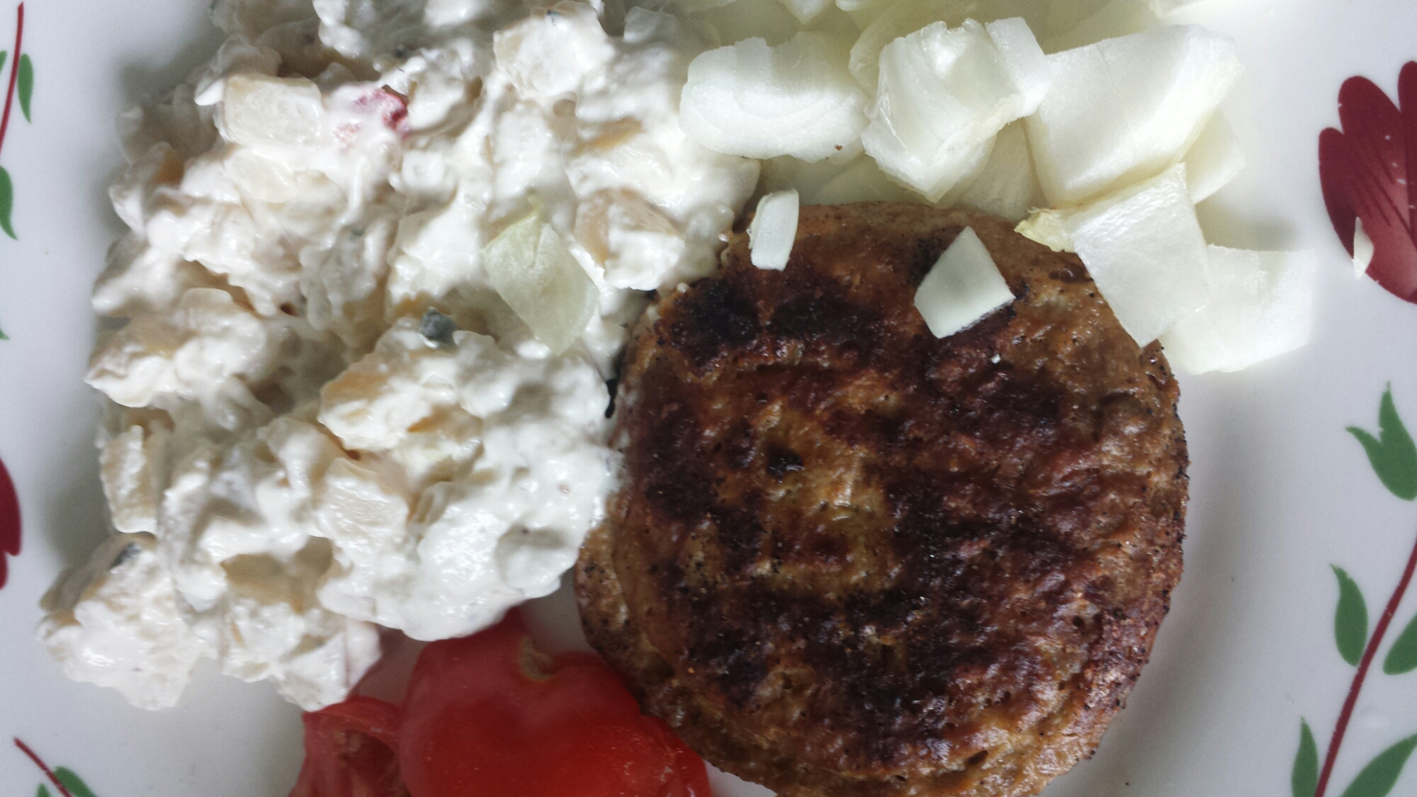 Kom hem och ”lagade” mat. Hade köpt potatissallad, för det var längesen jag åt. Stekte bara qournburgaren.