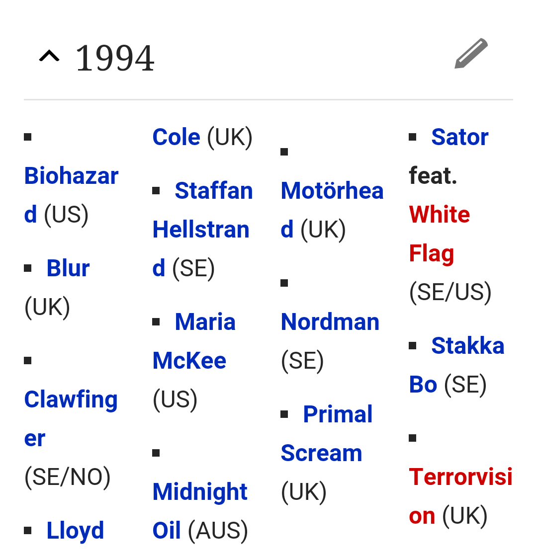 Såg dom på Hultsfred. Hmm, vilket år var det? Återkommer efter googling. Var där flera år, blandas ihop.