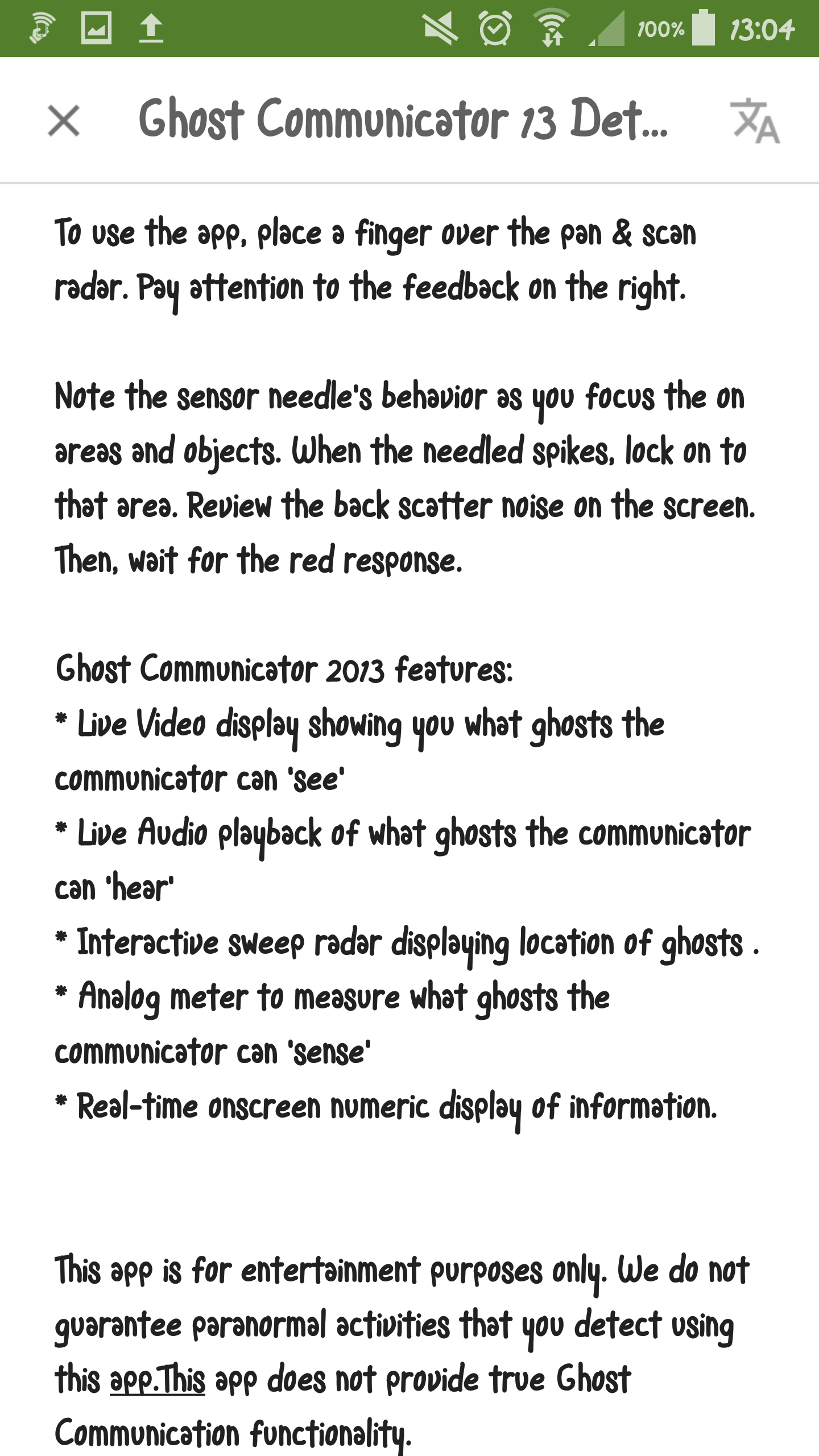 Fattar inte den här appen riktigt, men den försöker i alla fall. Det ingår både EMF och nån form av ”spirit box”. Orden verkar bara gå på repeat.