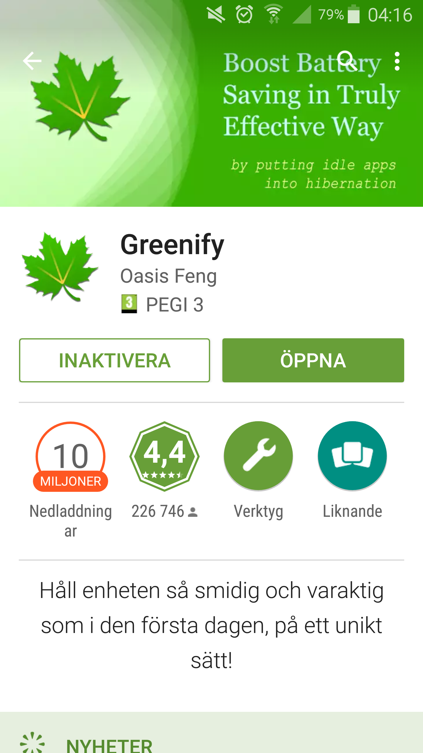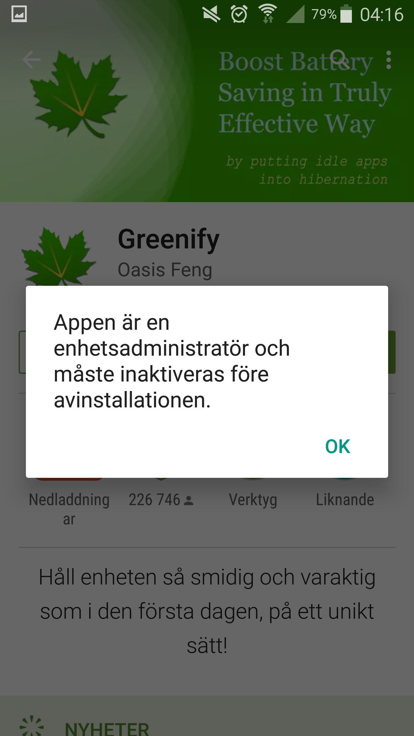 Avinstallerar ”Greenify” i alla fall, den är helt meningslös.