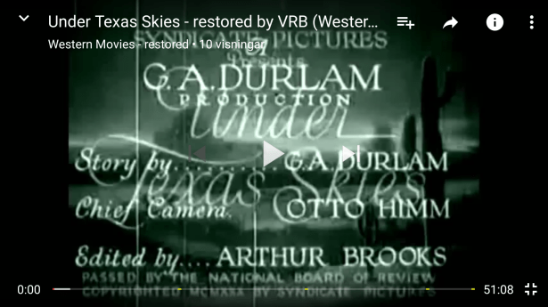 Måndag: Film (nr. 235, 236) 21 november 201621 november 2016Penardun Personligt Etiketter:"Sarah and Son" (1930), 8"Under Texas Skies" (1930) ”Under Texas Skies” (Västern 1930). Tråkig med dåliga skådisar. Tur att den inte ens var en timme lång. Betyg: 2/10. ”Sarah and Son” (drama 1930). Tragisk, men söt historia. Betyg: 7/10. Vill du verkligen dela? Tjohoo! Tryck: Klicka för att e-posta en länk till en vän (Öppnas i ett nytt fönster) E-post Dela på TumblrMerTweet Klicka för utskrift (Öppnas i ett nytt fönster) Skriv ut Klicka för att dela på Reddit (Öppnas i ett nytt fönster) Reddit PocketGilla Laddar in … Relaterade