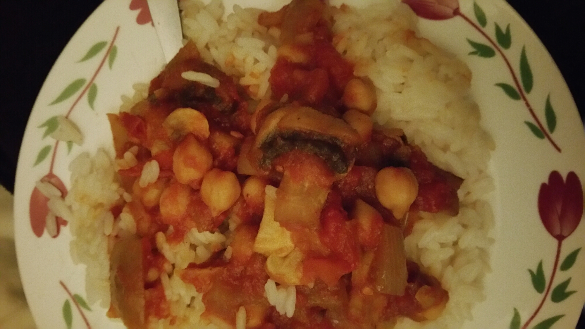 Gick förbi Willys och handlade mat. Lagade gryta med ris och kikärter.