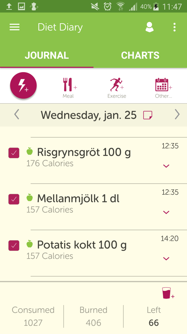Gårdagens mat och motion. Hur kan detta resultera i 1,1 kg viktuppgång?