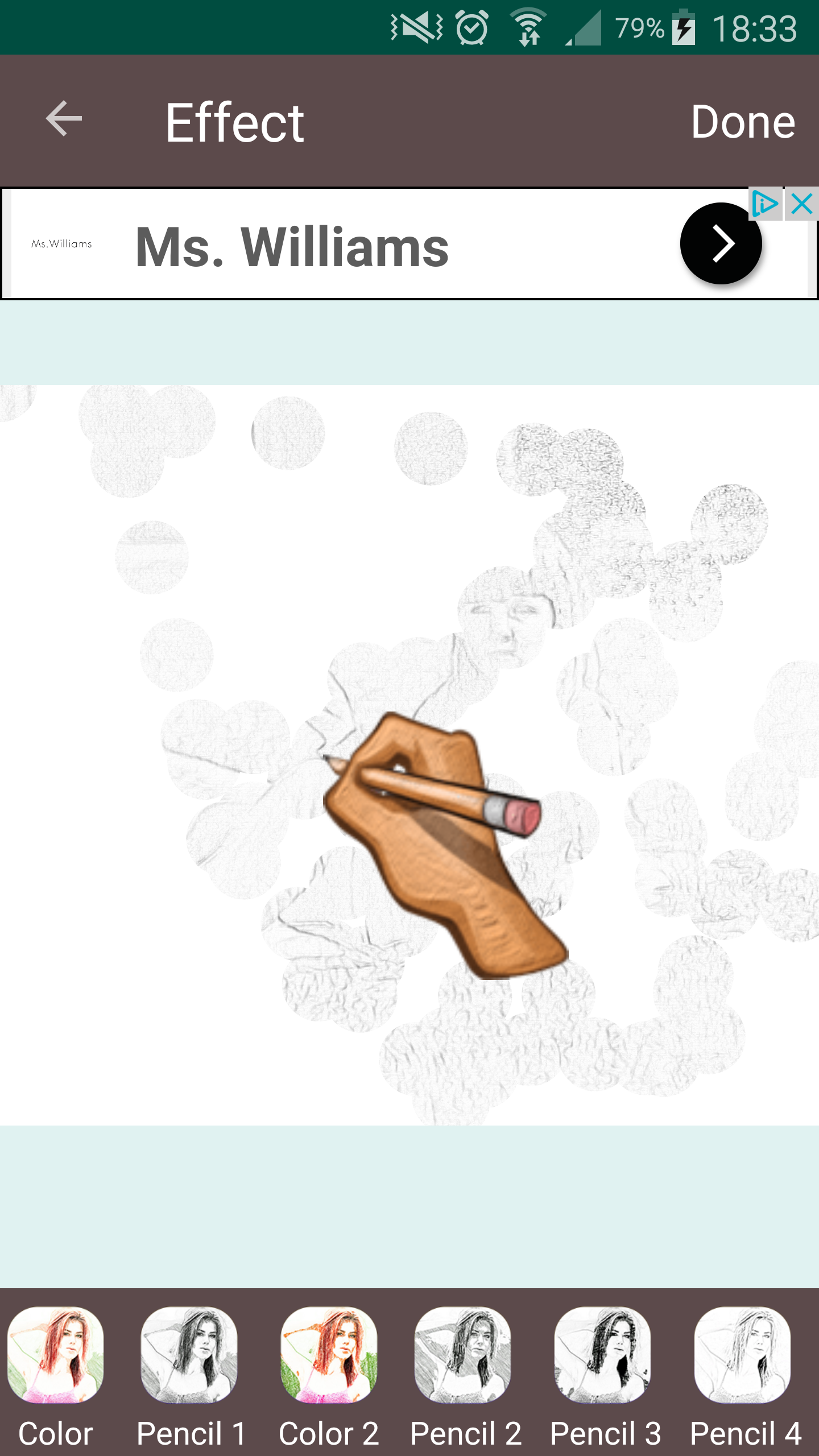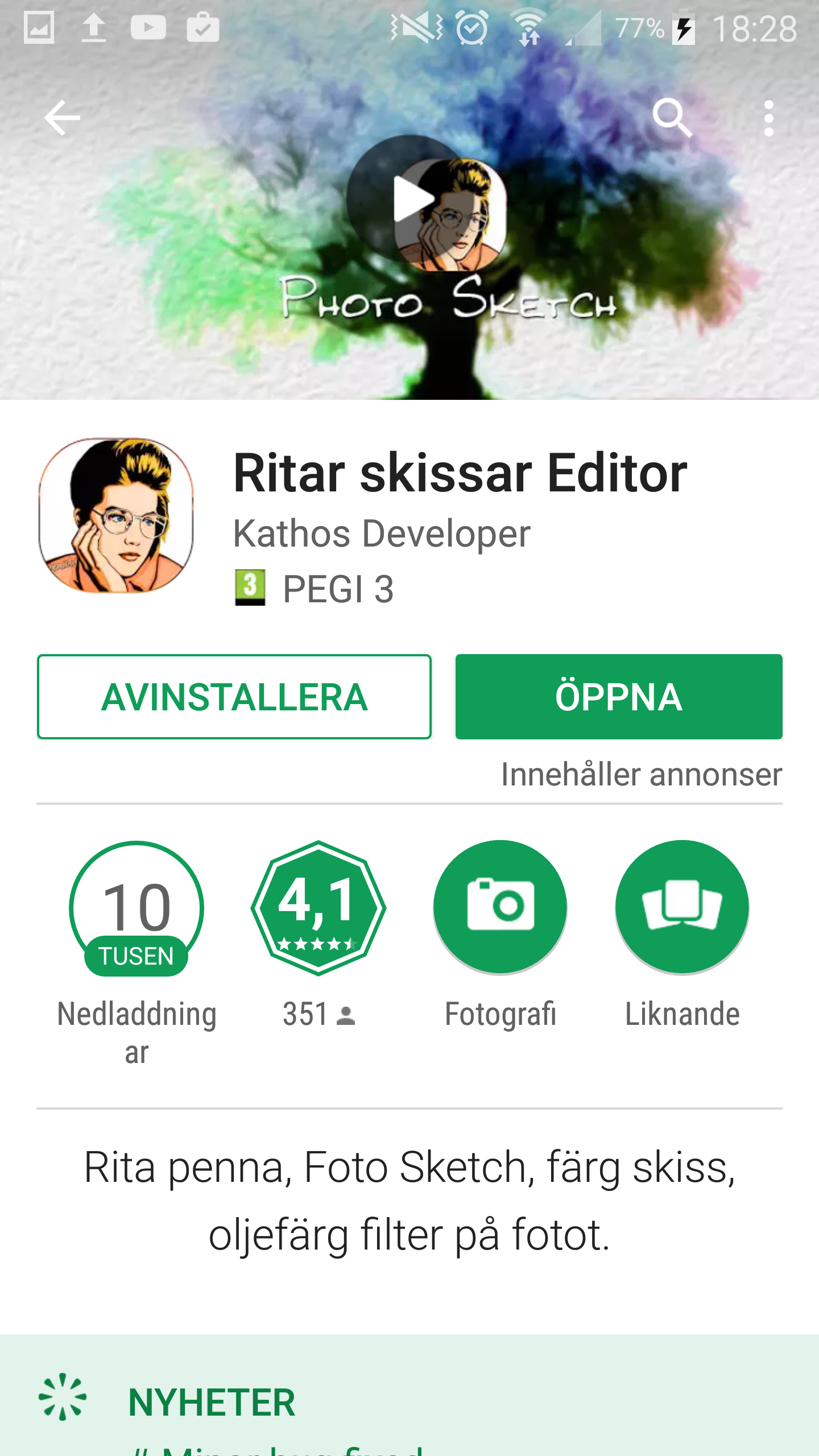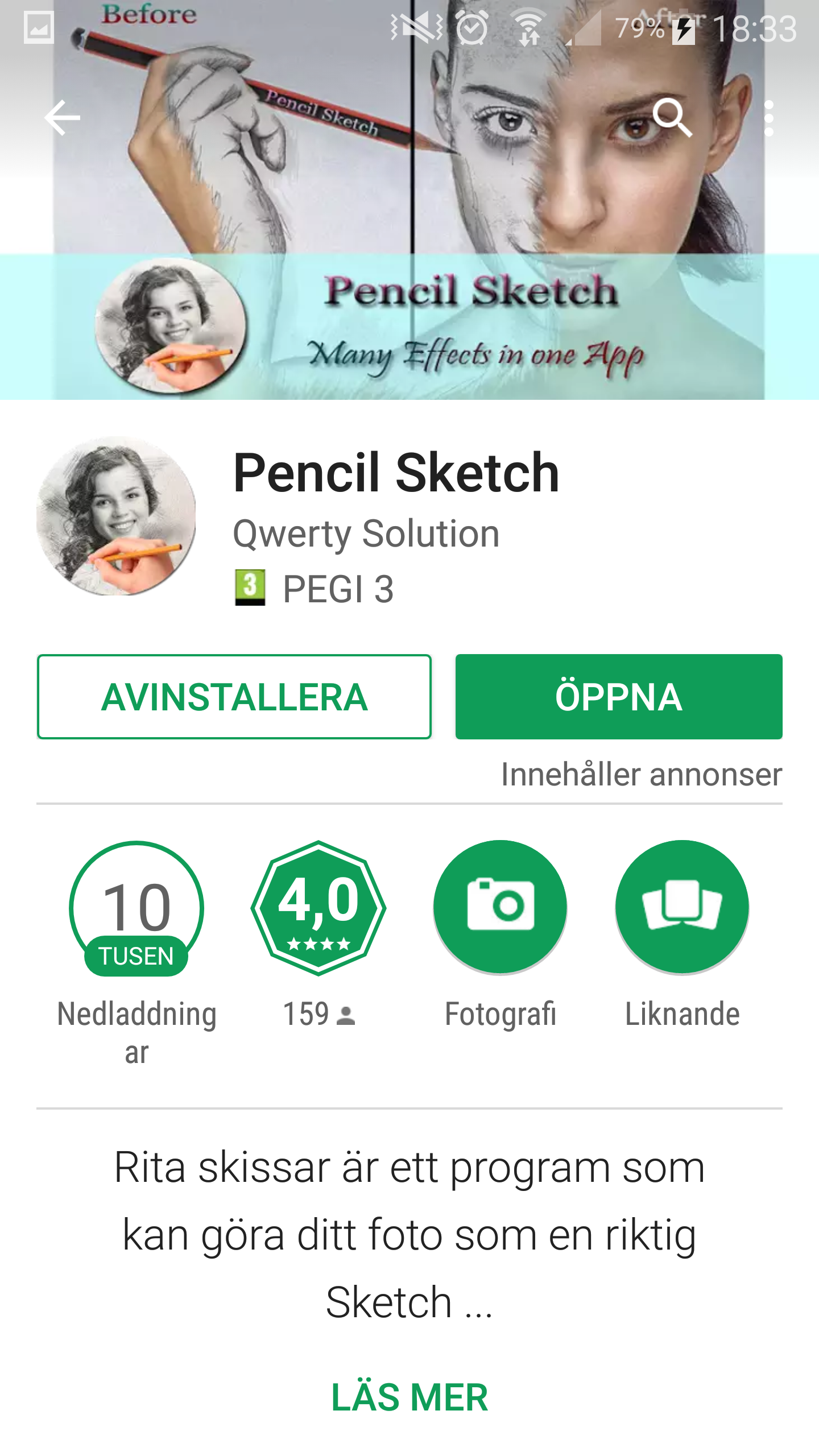 Hittade en som exempel på de dåliga sketchapparna. Finns flera (av olika tillverkare) som ser identiska ut. De har massor av reklam och bara max tio (kassa) filter. Nedan ”Ritar Skissar Editor” (Bra namn?!)