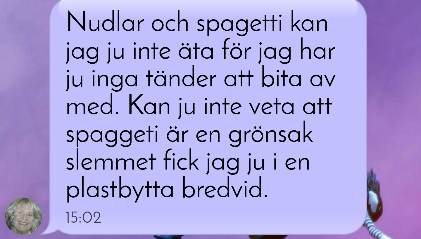 Livet på ett äldreboende sammanfattat. Trist att vi alla (nästan) kommer att hamna där. Aaaargh….