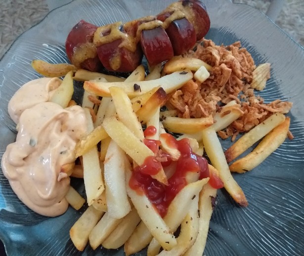 Korv och pommes 1000 kcal.