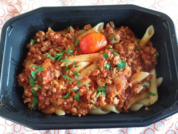 Pasta Quorn Bolognese från ICA Fokus. Mumsig. Eventuellt 600 kcal.