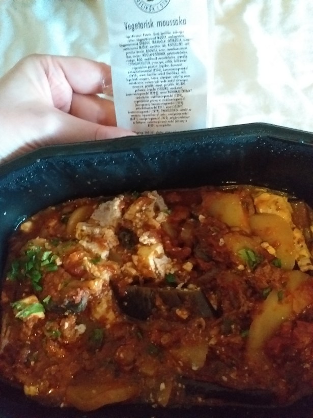 Vegetarisk moussaka från ICA Focus. Mums. 600 kcal.