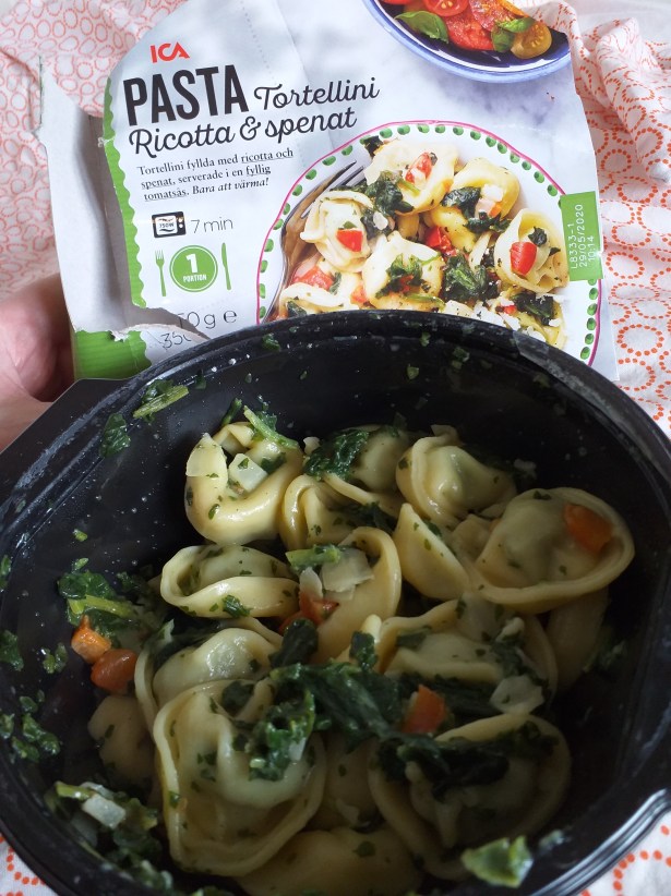 Pasta Tortellini – Ricotta & Spenat från ICA. Riktigt god. 350 kcal.