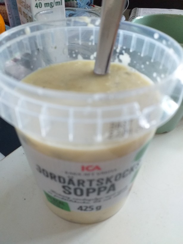 Jordärtskockssoppa från ICA. Mycket god. 382 kcal.