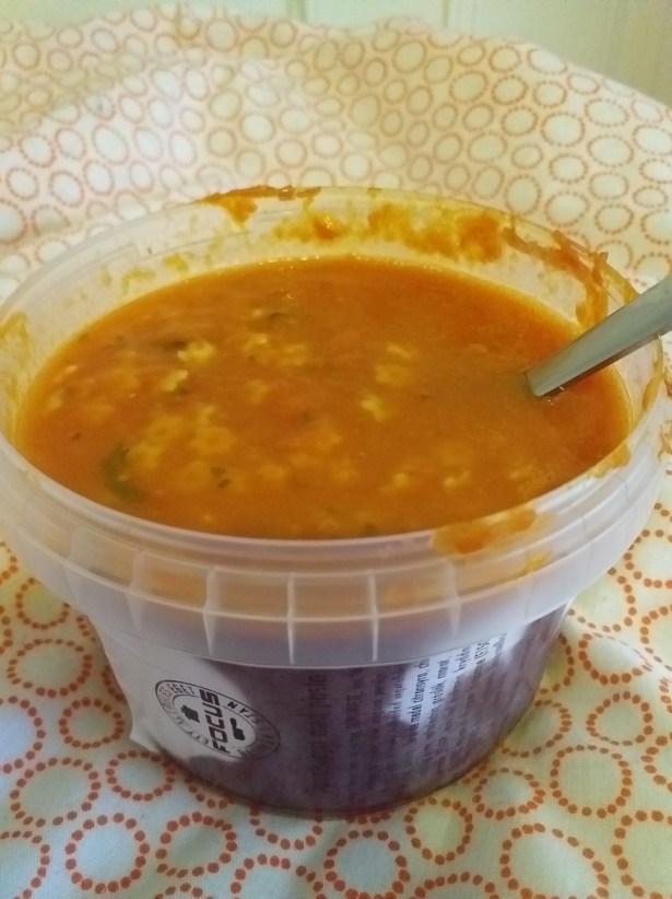 Tomatsoppa med pasta från ICA Fokus. God. 600 kcal.
