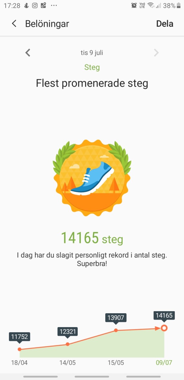 Promenad: 2h 30 minuter promenad (14419 steg / 579 kcal)