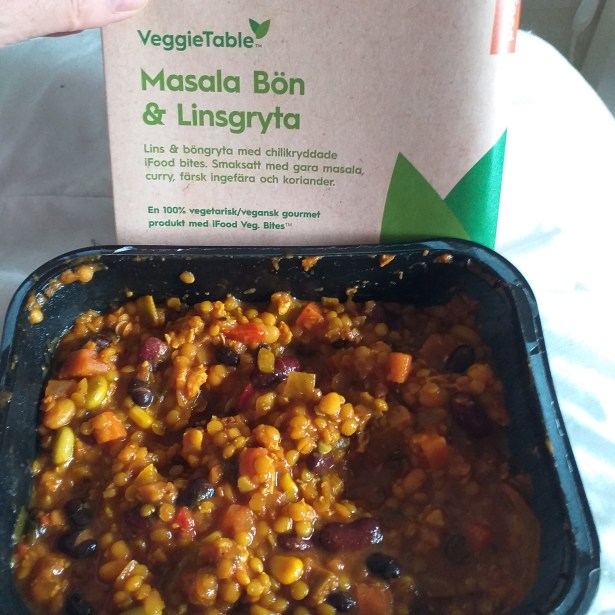 Masala Bön & Linsgryta från VeggieTable. God och mycket mättande. Den här rätten från VeggieTable hade normal mängd kcal och inte den enorma mängd som de andra haft. Bönerna och linserna satte verkligen igång magen, trodde jag var van efter att ha ätit baljväxter regelbundet i så många år. 520 kcal.Middag: Tortellini med Ricotta från Gooh! 550 kcal.Mellanmål: En aprikos, en persika, tre linskakor, en banan. 250 kcal.Summa kcal: 1479/1353Kolhydrater: 50/55 %Fett: 26/25 %Protein: 24/20 % (wow, mycket mer än vanligt)Förbränning: 1859/1904 = -381/-551Promenad: 1h 40 minuter till och från ICA, samt en långpromenad (11102 steg / 412 kcal)
