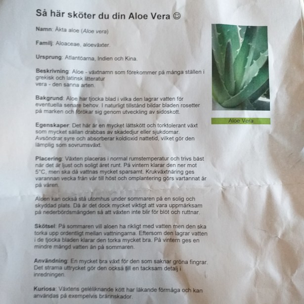 Jag tog med mej en Aloe Vera. Hade ju en förut, så kul med en ersättning.