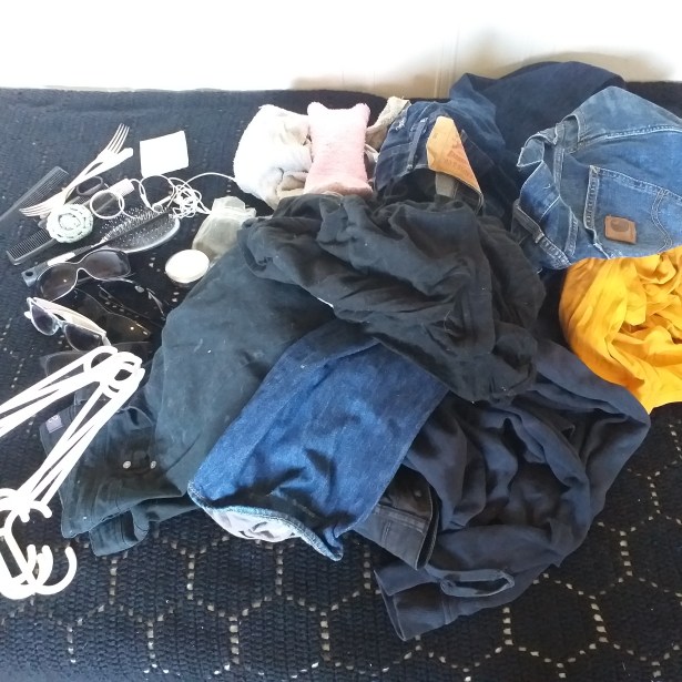 Skörden med kläder som jag ska prova mej igenom under veckan.