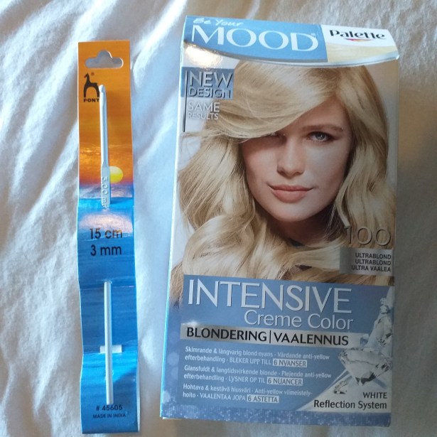 Dagen i sammanfattning: Gick upp kl. 6.30. Morgonrutin. Begav mej iväg kl. 8.30. Ringde min handläggare, fortfarande sjuk. Simmade, vilket var jobbigt för psyket, men jag härdade ut. Gick sedan en promenad, köpte en 3,00 mm virknål, lämnade tillbaka boken på biblan och lånade den nya versionen, som jag hade reserverat. Därefter Ö&B, där jag köpte blekmedel.