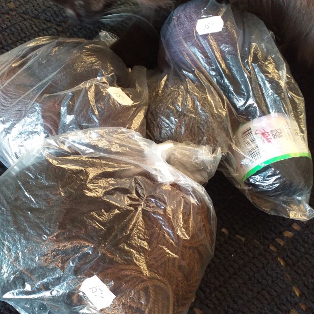 Blev åtta nystan för 45 kr. Ska användas till att sätta ihop alla mormorsrutor.