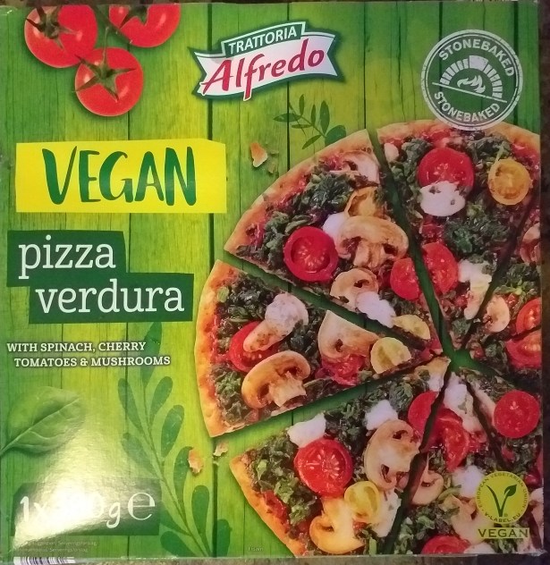 Vegan Pizza Verdura från Trattoria Alfredo. Riktigt god ugnspizza inköpt på Lidl. 573 kcal.