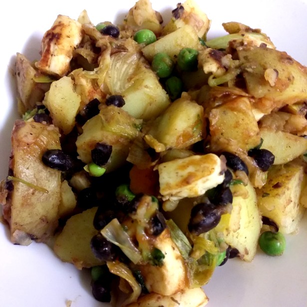 Potatis, Svarta Bönor och Grillost. Blev mumsigt. 500 kcal.