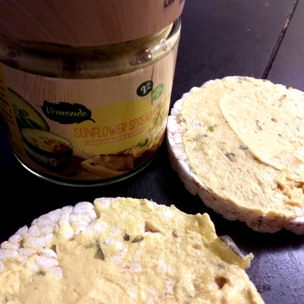 Mellanmål: Två majskakor, en banan, två riskakor med Sunflower Spread (Zucchini och Curry), inköpt på Lidl idag. Väldigt god. 260 kcal.