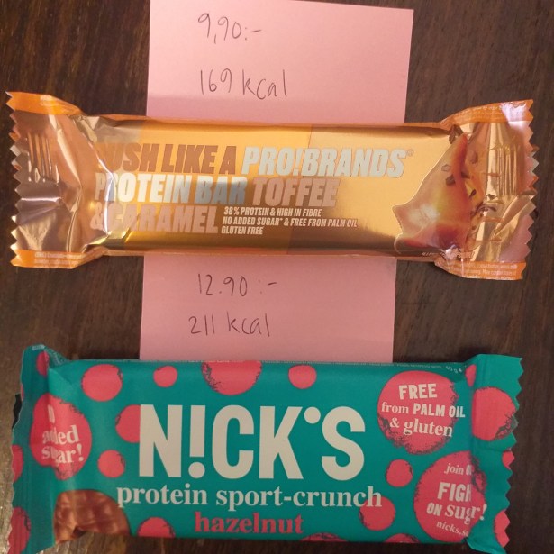 Älskar verkligen kvarg, men tydligen innehåller min favorit mycket socker, så nu köpte jag den naturella varianten, som jag smaksatte med Fun light (enligt tips på nätet). Blev mycket gott. Köpte två olika protein bars bara för att testa. Har bara smakat den övre, men den var god.