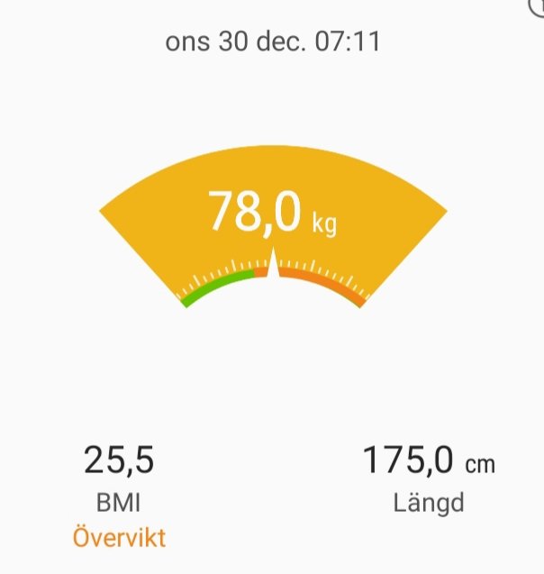 Vägde mej igår. Nu är det illa igen, t.o.m. övervikt på BMI