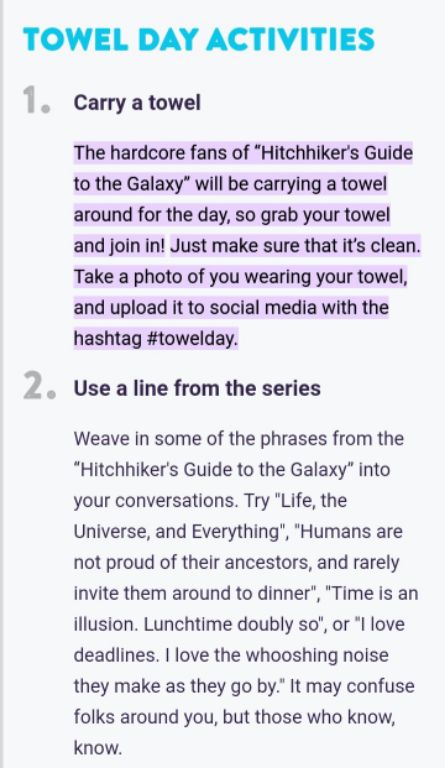 Bara så ni vet så är det ”Towel Day” imorgon. Don’t panic.