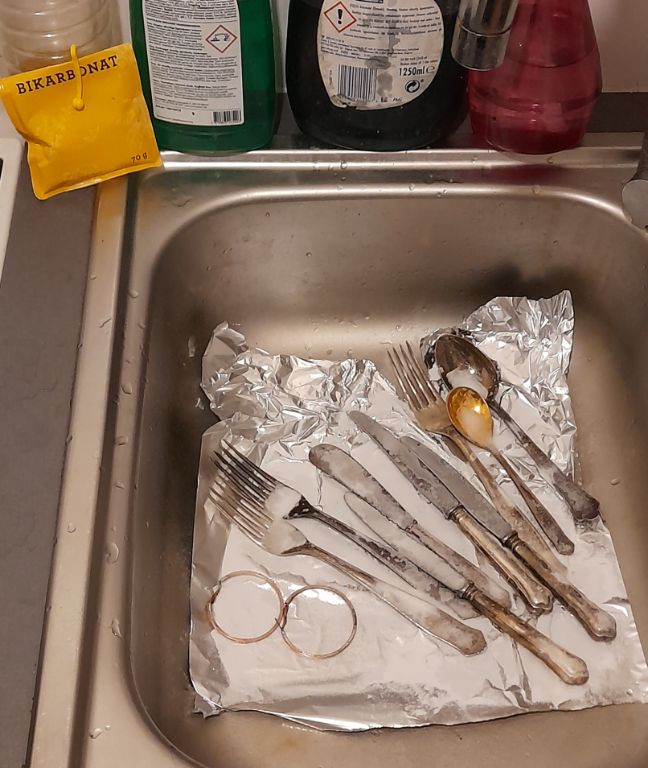 Jag är väldigt osäker på att mina bestick är silver, trots att jag har ärvt dom, men ett försök skadar inte. Och att frysa bananer är så dumt att det inte har slagit mej innan…!