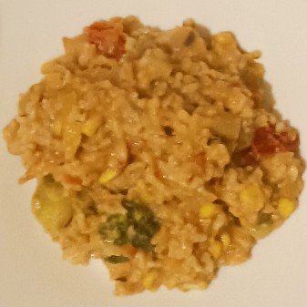 Lagade mat. Gick efter ett recept som hette linsstroganoff med halloumi, men det fick bli med edamer istället. Tog också currypasta istället för tomatpuré, så det blev starkt. Gott!