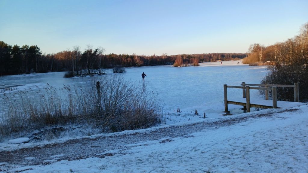 Gick ungefär lika länge som igår. Det var -9°,men jag klär mej varmt, så det går bra.