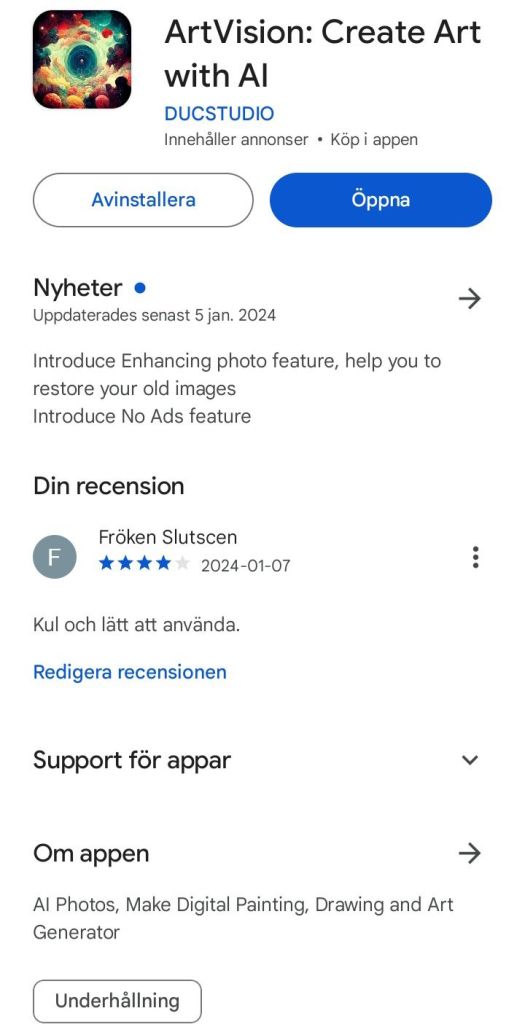 Test av AI-app Artvision