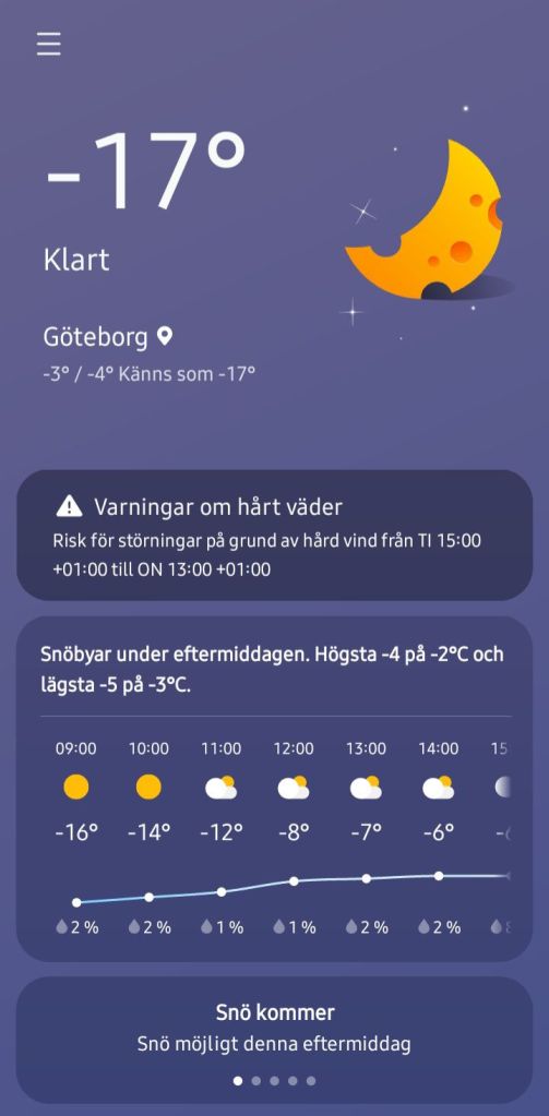 Vaknade tio minuter innan klockan ringde, men gick upp ändå. Tack och lov visste jag inte att det var -17° ute – brrr.