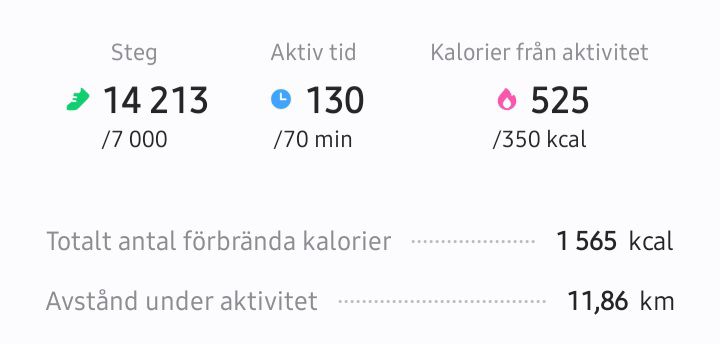 Vikt: 65,6 (-4,4) [åt ca. 1000 kcal igår, 0 trots min enorma promenad]