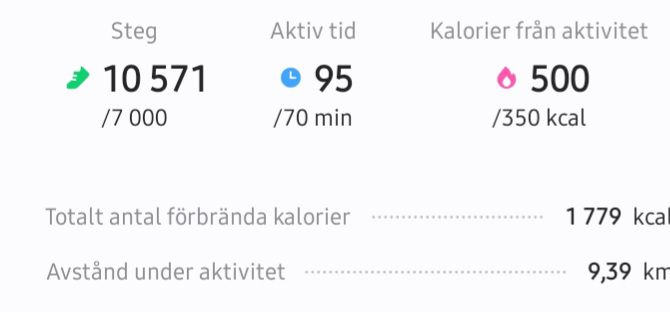 Vikt: 65,3 (-5,7) [åt ca. 3500 kcal igår, +1,3]