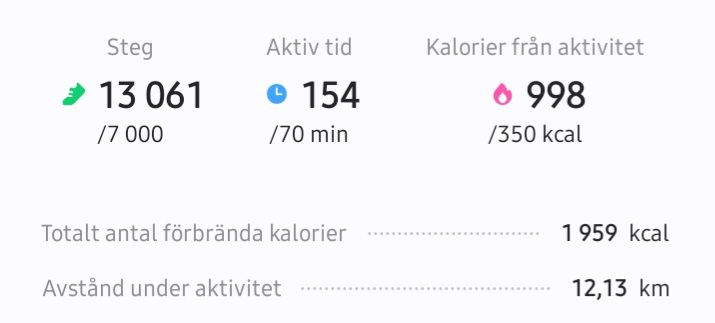 Vikt: 64,2 (-6,0) [åt ca. 1000 kcal, förbrände ca. 2000 kcal, -1,0]
