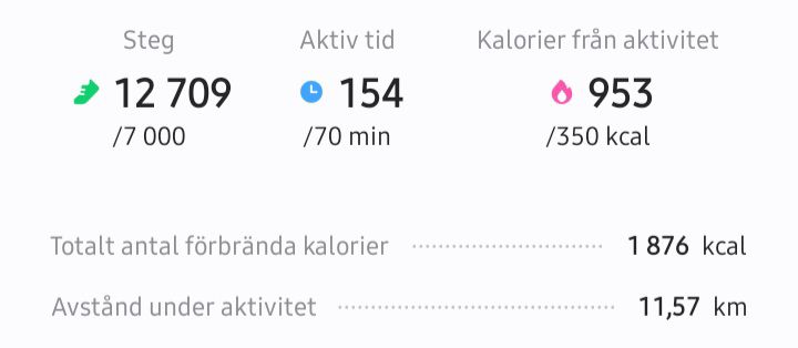 Vikt: 63,9 (-7,1) [åt ca. 1000 kcal, förbrände ca. 2300 kcal, -0,3]