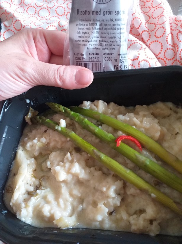 Lunch: Risotto med Grön Sparris från ICA Focus. 600 kcal.
