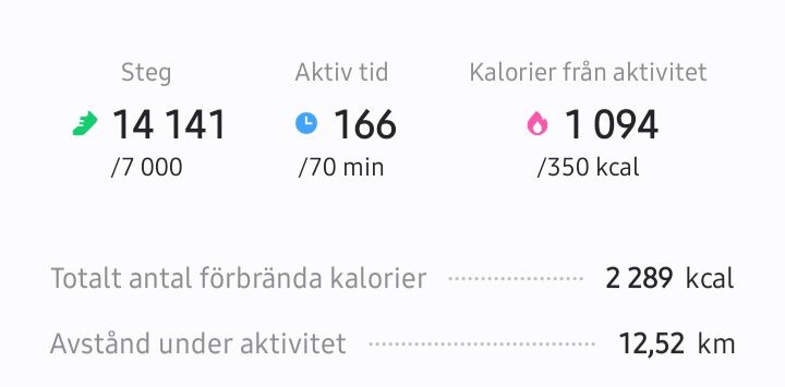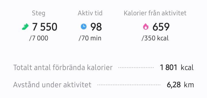 Vikt: 63,5 (-7,5) [åt ca. 1000 kcal, förbrände ca. 1700 kcal, -1,8]