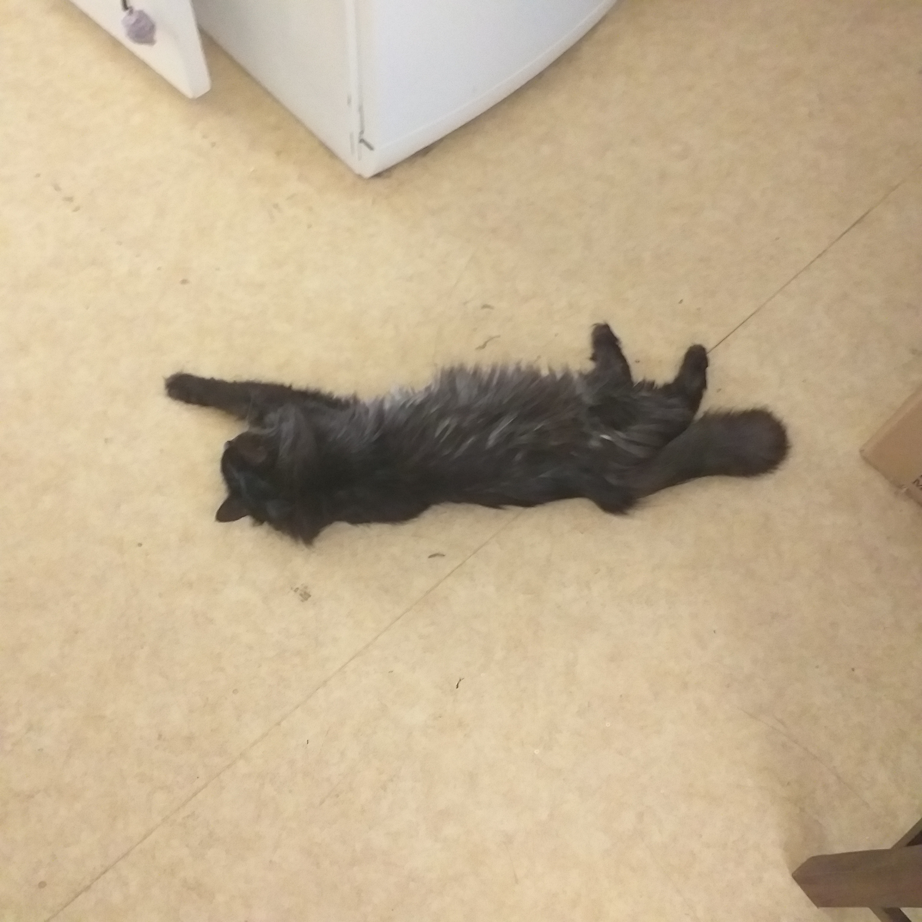 En utslängd mager räka. (Varför använder han inte kylbädden? Hur svalt är golvet i jämförelse?)