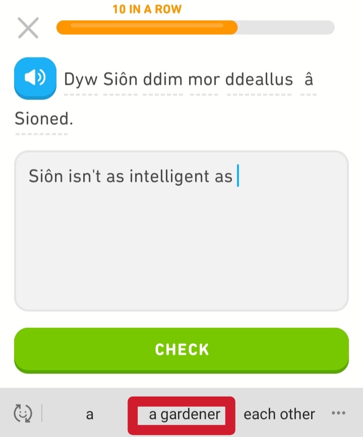 Min språkapp, Duolingo, och förslagen på mobilens tangentbord blir underliga.